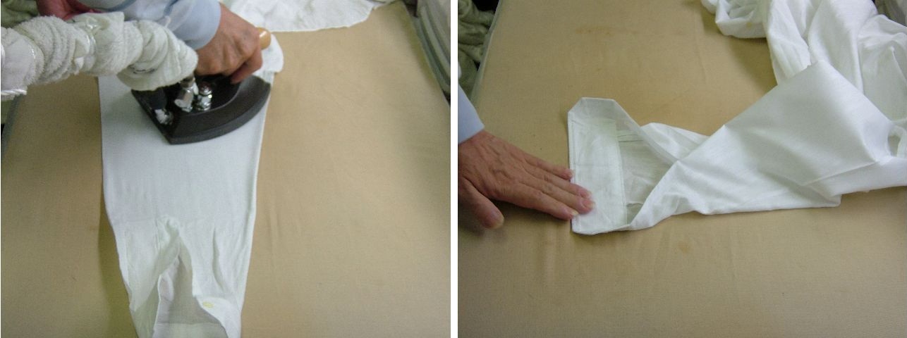008 袖の平らな部分を丁寧にアイロン掛けをします。