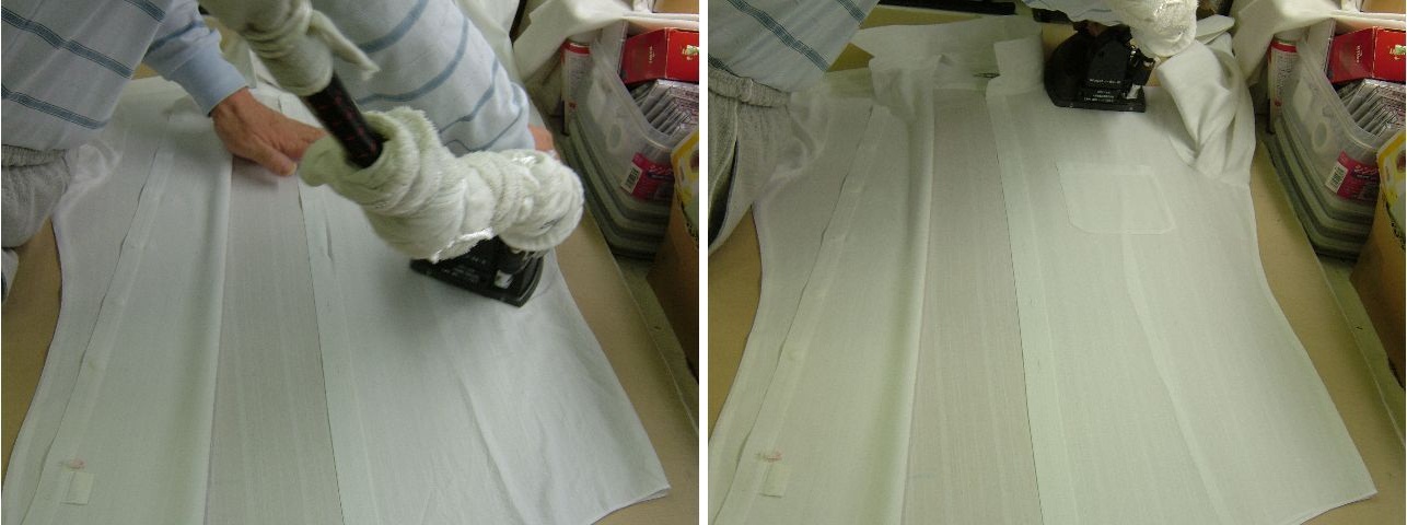 005 前たて部分の裏から丁寧に乾かします。裏地を綺麗に乾かしておくと表地が綺麗に仕上がります。
